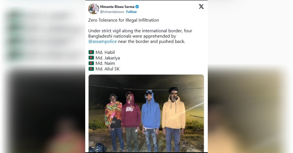 শেহতীয়াকৈ পুনৰ চাৰি বাংলাদেশী নাগৰিকৰ অনুপ্ৰৱেশত বাধা প্ৰদান কৰিছে অসম আৰক্ষীয়ে । অবৈধভাৱে ভাৰতত প্ৰৱেশ কৰিবলৈ চেষ্টা কৰা এই চাৰিজন বাংলাদেশীক অসম আৰক্ষীয়ে বাধা দিয়াৰ তথ্য প্ৰকাশ কৰিছে মুখ্যমন্ত্ৰী হিমন্ত বিশ্ব শৰ্মাই ।মনকৰিবলগীয়া যে, বিশেষকৈ বাংলাদেশত ৰাজনৈতিক অস্থিৰতা সৃষ্টি হোৱাৰে পৰা বাংলাদেশী নাগৰিকৰ ভাৰতত অনুপ্ৰৱেশৰ চেষ্টা বৃদ্ধি পাবলৈ ধৰিছে । ইয়াৰ মূলতে দেশখনত কৰ্ম সংস্থাপনৰ অভাৱ আৰু আৰ্থিক সংকটৰ বাবে ভাৰতত সেই দেশৰ নাগৰিকৰ অনুপ্ৰৱেশ বৃ্দ্ধি পাবলৈ ধৰিছে বুলি চৰ্চা হৈছে । এই বাংলাদেশী নাগৰিক কেইজনৰ নাম হৈছে মঃ হাবিল, মঃ জকাৰিয়া, মঃ নাইম আৰু মঃ আলিউল এছ কে। উল্লেখ্য যে, কোনখন জিলাৰ পৰা এই কেইজন অনুপ্ৰৱেশকাৰীক ঘূৰাই পঠিওৱা হৈছিল সেই কথা স্পষ্ট কৰা নাই এক্স হেণ্ডেলৰ পোষ্টটোত । Share this:FacebookX Related Post navigation ডব্লিউইএফৰ বাৰ্ষিক সভা ২০২৫-এ বিশ্বৰ নেতাসকলক একত্ৰিত কৰিছে ভয়ংকৰ অগ্নিকাণ্ড ফলত ৭৬জন লোকৰ মৃ*ত্যু