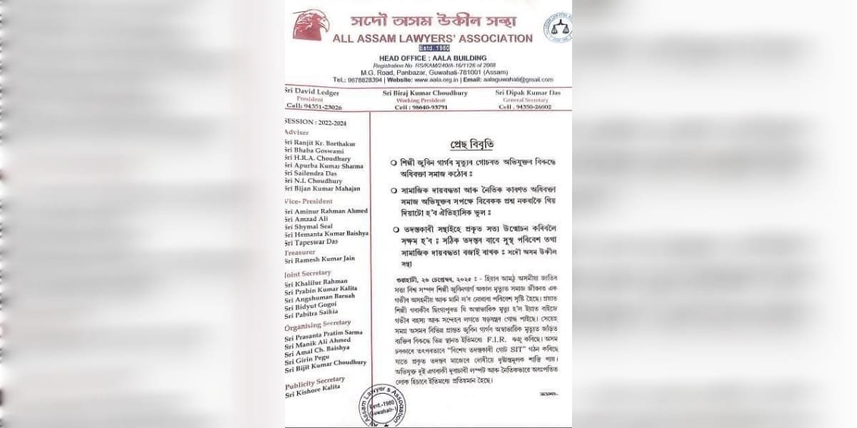 শ্যামকানু, সিদ্ধাৰ্থহঁতৰ হৈ অসমৰ কোনো অধিবক্তাই ওকালতি নকৰে সদৌ অসম উকীল সন্থাই গ্ৰহণ কৰিছে এই সিদ্ধান্ত। জুবিন গাৰ্গৰ মৃত্যু সন্দৰ্ভত দোষী পক্ষৰ হৈ কোনো অধিবক্তাই ওকালতি নকৰাৰ সিদ্ধান্ত লৈছে ।অসমৰ সকলো অধিবক্তাক সন্থাই সেইসকলৰ হৈ ওকালতি নকৰিবলৈ আহ্বান জনাইছে ।সন্থাৰ সভাপতি শৈলেন দাস, সাধাৰণ সম্পাদক দীপক দাস আৰু উপ সভাপতি বিজন মহাজন স্বাক্ষৰিত এই আহ্বানমূলক এখনি আনুষ্ঠানিক পত্ৰ প্ৰেৰণ কৰা হ’ব সকলো জিলালৈ।ইফালে বহুকেইখন অধিবক্তাৰ সৈতে অগ্ৰিম জামিনক লৈ কথা পাতিছিল শ্যামকানু মহন্তই। Share this:FacebookX Related Post navigation একাধিক অপহৰণৰ পিছত ইৰাণত ভুৱা চাকৰিৰ প্ৰস্তাৱৰ বিৰুদ্ধে ভাৰতে এডভাইজাৰী জাৰি কৰিছে এগৰাকী ননদে বোয়েকক পলুৱাই লৈ যায়