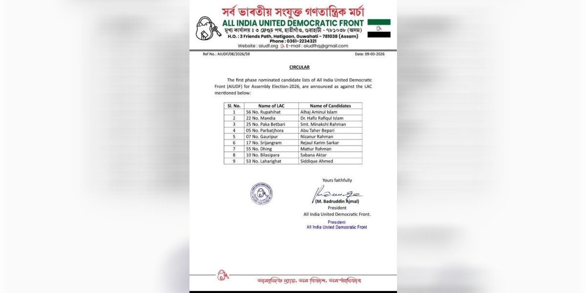 ৰাজ্যৰ ৰাজনীতিৰ আন এক গুৰুত্বপূৰ্ণ দল হৈছে এ আই ইউ ডি এফ । বদৰুদ্দিন আজমল নেতৃত্বাধীন দলটোৱে ৰাজ্যৰ ৰাজনীতিত এক গুৰুত্বপূৰ্ণ ভূমিকা পালন কৰে । সেয়ে এই দলটোৰ ওপৰত সকলোৰে দৃষ্টি থাকে । অৱশ্যে এইবাৰ কোনো মিত্ৰজোঁটত নাই আজমলৰ দলটো । কিন্তু তথাপিও দলটোৱে নিৰ্বাচনত এক গুৰুত্বপূৰ্ণ প্ৰভাৱ যে পেলাব সেইটো খাটাং । সেয়ে দলীয় প্ৰাৰ্থীক লৈ সকলো দলে একপ্ৰকাৰ উদগ্ৰীৱ হৈ আছে । তাৰ মাজতে এ আই ইউ ডি এফে প্ৰকাশ কৰিছে প্ৰথমখন প্ৰাৰ্থী তালিকা । ৯ টা সমষ্টিৰ বাবে প্ৰাৰ্থীৰ নাম ঘোষণা কৰি দলটোৱে প্ৰথমখন প্ৰাৰ্থী তালিকা প্ৰকাশ কৰিছে ।প্ৰথমখন তালিকাত ৯ টা সমষ্টিৰ বাবে প্ৰাৰ্থীৰ নাম ঘোষণা কৰিছে দলটোৱে । Share this:FacebookX Related Post navigation গুড়ৰ উপকাৰী গুণৰ বিষয়ে জানেনে কংগ্ৰেছ দলৰ প্ৰাৰ্থী অশোক শৰ্মাক আটক কৰিছে আৰক্ষীয়ে