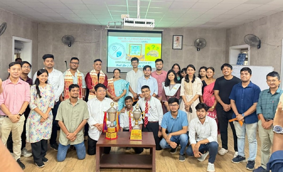 গুৱাহাটী জালুকবাৰীস্থিত চৰকাৰী আয়ুৰ্বেদিক মহাবিদ্যালয়ৰ শালক্য তন্ত্ৰ বিভাগৰ উদ্যোগত আৰু চৰকাৰী আয়ুৰ্বেদিক মহাবিদ্যালয়ৰ ছাত্ৰ পৰিষদৰ সহযোগত প্ৰয়াত অধ্যাপক ডাঃ কেশৱ চন্দ্ৰ বৰ্মনৰ সোঁৱৰণত ১৪ ছেপ্টেম্বৰত অসম ভিত্তিত এখন প্ৰাইজমানি কুইজ প্ৰতিযোগিতা অনুষ্ঠিত হয়। অধ্যাপক ডাঃ জ্যোতিৰ্ময় শর্মাৰ পৰিচালনাত অনুষ্ঠিত প্ৰতিযোগিতাখনত অসমৰ বিভিন্ন প্ৰান্তৰ কেবাখনো বিদ্যালয় , মহাবিদ্যালয় আৰু বিশ্ববিদ্যালয়ৰ দলে অংশগ্ৰহণ কৰে। আৰম্ভণিতে প্ৰয়াত অধ্যাপক ডাঃ কেশৱ চন্দ্ৰ বৰ্মনৰ প্ৰতিচ্ছবিত মালাৰ্পন কৰি প্ৰতিযোগিতাখন উদ্ধোধন কৰে চৰকাৰী আয়ুৰ্বেদিক মহাবিদ্যালয়ৰ অধ্যক্ষ অধ্যাপক ডাঃ প্ৰণৱজ্যোতি বৈশ্যই। অনুষ্ঠানত মুখ্য অতিথিৰূপে উপস্থিত থাকে অসম লোকসেৱা আয়োগৰ প্ৰাক্তন অধ্যক্ষ ভাৰত ভূষণ দেৱ চৌধুৰী আৰু বিশিষ্ট অতিথি ৰূপে উপস্থিত থাকে প্ৰয়াত অধ্যাপক ডাঃ কেশৱ চন্দ্ৰ বৰ্মনৰ সহধৰ্মীনি কবিতা বৰ্মন। আনহাতে অসম ভিত্তিত অনুষ্ঠিত প্ৰতিযোগিতাখনত মুঠ ছটা দল চূড়ান্ত প্ৰতিযোগিতালৈ উত্তীৰ্ণ হয়। প্ৰতিযোগিতাত বজালীৰ ভট্টদেৱ বিশ্ববিদ্যালয়ৰ ভাৰ্গৱ ভূষণ বিশ্বপতি আৰু কৃষানু কাশ্যপ বিশ্বপতিয়ে প্ৰথম স্থান লাভ কৰি নগদ ১৫ হাজাৰ টকাসহ মানপত্ৰ, গুৱাহাটী বিশ্ববিদ্যালয়ৰ পাৰ্থ প্রতিম ভৰলুৱা আৰু শক্তিমান পেগুয়ে দ্বিতীয় স্থান লাভ কৰি নগদ ১০ হাজাৰ টকাসহ মানপত্ৰ , চৰকাৰী আয়ুৰ্বেদিক মহাবিদ্যালয়ৰ মিনহাজ ৰহমান আৰু বিমান ডেকাই তৃতীয় স্থান লাভ কৰি নগদ ৭ হাজাৰ টকাসহ মানপত্ৰ লাভ কৰে। আনহাতে গুৱাহাটী বিশ্ববিদ্যালয়ৰ হিমাংশু নাথ আৰু প্ৰীয়ানুজ পৰাশৰে চতুৰ্থ স্থান , মালিগাঁৱৰ ছেইণ্ট বিবেকানন্দ ইংলিছ একাডেমীৰ নীৰজ শৰ্মা আৰু অংকিত মণ্ডলে পঞ্চম স্থান, গুৱাহাটী চিকিৎসা মহাবিদ্যালয়ৰ সুভাংগ ভূষণ গোস্বামী আৰু লাকী সিঙে ষষ্ঠ স্থান লাভ কৰে। ইয়াৰ উপৰিও চতুৰ্থ, পঞ্চম, ষষ্ঠ পুৰস্কাৰ বিজেতা সকলে নগদ ১ হাজাৰ টকাসহ মানপত্ৰ লাভ কৰে । প্ৰতিযোগিতাত শ্ৰেষ্ঠ বিদ্যালয় দলৰ পুৰস্কাৰ লাভ কৰে ছেইণ্ট বিবেকানন্দ ইংলিছ একাডেমী , শ্ৰেষ্ঠ মহাবিদ্যালয় দলৰ পুৰস্কাৰ লাভ কৰে গুৱাহাটী বিশ্ববিদ্যালয় দলটোৱে । প্ৰতিযোগীতাৰ অন্তত বিজয়ী দল সমূহক নগদ ধন আৰু মানপত্ৰ সমুহ প্ৰদান কৰে হয়। Share this:FacebookX Related Post navigation গিৰিজানন্দ চৌধুৰী বিশ্ববিদ্যালয়ত আৰ্হি নিৰ্মাণ আৰু উদ্ভাৱনৰ ওপৰত এদিনীয়া শিক্ষক প্ৰশিক্ষণ সম্পন্ন বিশ্বকৰ্মা পূজাত যান-বাহন প্ৰতিষ্ঠানৰ শ্ৰমিক, বাহনৰ সহায়কৰ বাবে পৰিবহণ বিভাগৰ বিশেষ জনসেৱা মাহৰ কাৰ্যসূচী